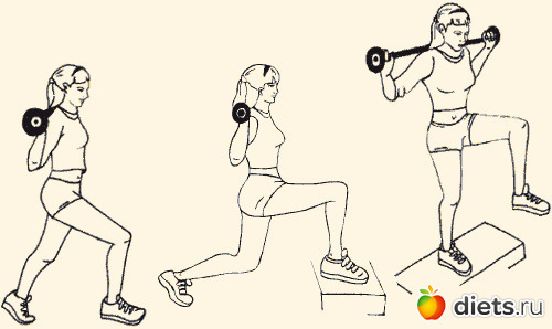 Выпады не люблю, да и вообще упражнения на ноги практически не делаю. Только Лесли и дорожка с эллипсом в спртзале. Меня больше волнует мой верх: грудь, живот и спина (заплывшие жирком