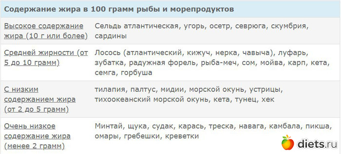 В системах безуглеводного питания при снижении веса часто советуют заменить мясо на рыбу. Однако не все сорта одинаково полезны. По калорийности жирная скумбрия намного обогнала постную свинину. Дабы не ошибиться, разделим рыбу по содержанию жира.