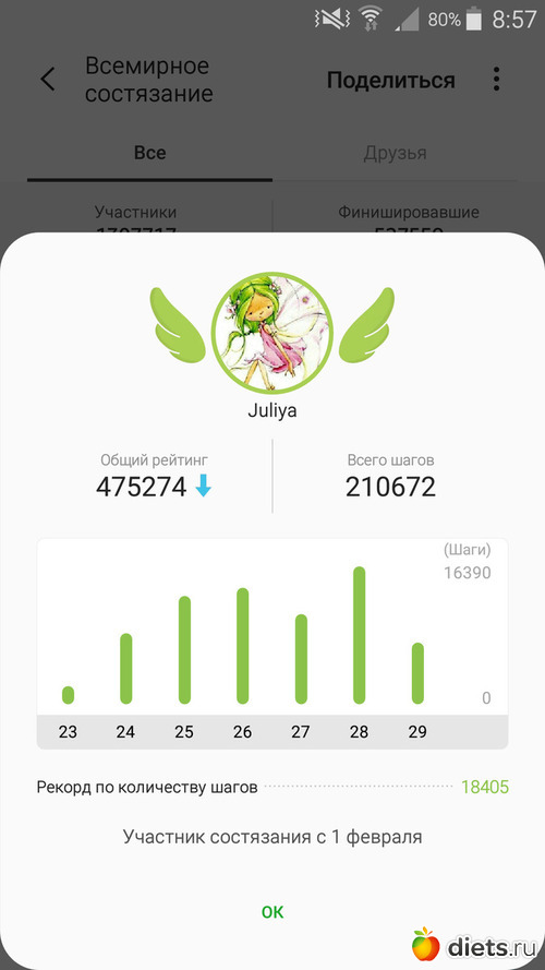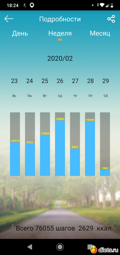 Целью недели были 40 000 шагов + наказание 1 000 шагов.