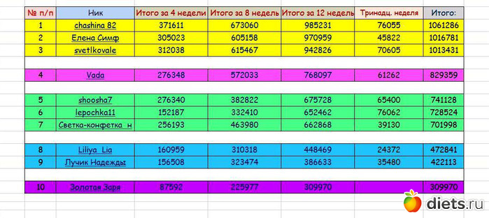 , а я спешу поделиться с вами итоговой результативной таблицей:
