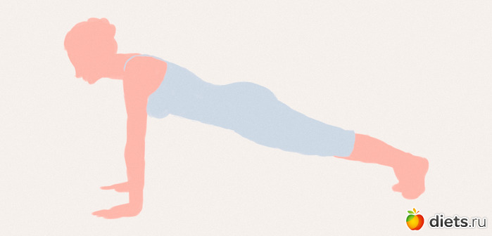 В чем польза: Упор лежа — это силовое упражнение, задействующее все мышцы корпуса. Правильное выполнение упражнения поможет укрепить мышцы спины, пресса и ягодиц одновременно, при этом снимая нагрузку с поясницы. Как делать упор лежа: Встаньте на колени, руки на ширине плеч, выпрямите спину, затем ноги. Необходимо опираться на прямые и напряженные конечности. Живот должен быть втянут, а ягодицы напряжены. Следите за тем, чтобы ваш позвоночник напоминал прямую линию. Если расслабить живот и ягодицы, то нагрузка сразу же перейдет на поясницу, что только усугубит боль в спине, поэтому следите за тем, чтобы не провисать и не проваливаться. Упор лежа — это прямая твердая линия от макушки до пяток. При необходимости усложнить упражнение можно по очереди поднимая правую и левую ноги, оставляя вес на трех конечностях.
