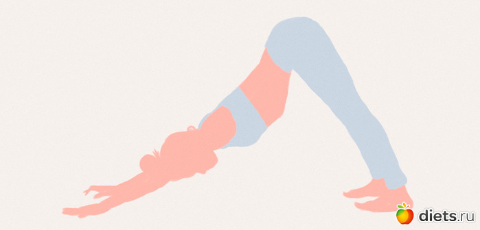В чем польза: Упражнение «угол» снимает напряжение со спины, выравнивает позвоночник и растягивает мышцы грудного отдела и задней поверхности бедер. Как выполнять упражнение «угол»: Для выполнения данного упражнения на прямых, расставленных на ширину плеч ногах наклонитесь вперед, руками коснитесь пола. Нагрузку распределите между упором на руки и на ноги. Постепенно старайтесь вытянуть спину, поднимая макушку вверх между руками, а таз наоборот тяните вниз. Основное действие происходит с позвоночником, поэтому стоит следить за тем, что вы не сутулитесь, не сгибаете ноги в коленях и не напрягаете мышцы, которые напрягать не требуется. Вытягиваться должна только спина. Из положения горки вы выпрямляете ее в горизонтально прямую линию. Если данное упражнение больше не кажется для вас сложным, то после выпрямления спины в линию добавьте раскрытие грудного отдела, постепенно опуская грудную клетку на пол.
