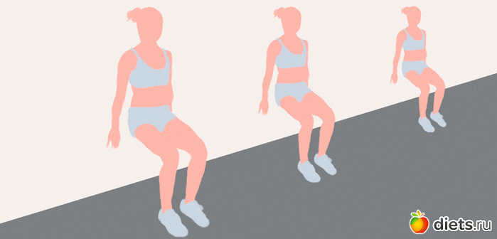 В чем польза: Во время сидения у стенки проще всего контролировать свой позвоночник, так как он остается прямым. В то же время таз интенсивно работает вместе с мышцами бедер. Это одно из лучших упражнений для тех, кто не хочет напрягать спину, но нуждается в интенсивной нагрузке на ягодицы, бедра и голени. Как делать стенку спиной: Прижмитесь к стене позвоночником, расслабьте спину, втяните живот, поясница должна быть прижата к стене. Несмотря на то, что стена регулирует направление вашего позвоночника, следите за тем, чтобы избежать сутулости. Медленно опускайтесь до тех пор, пока ноги не будут согнуты в коленях под углом в 90 градусов. Бедра лучше всего расставить в стороны для лучшего упора. Следите за тем, чтобы спина была прижата к стене и не брала на себя основную нагрузку.