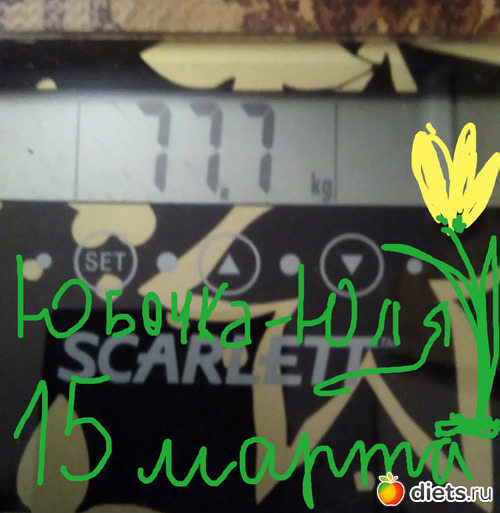 Фото я не сделала, но у меня привес. 8 марта утром было 95,7, а уже вечером 96,5 (как вы догадались, это праздничный ужин). И всю неделю 96,5.
