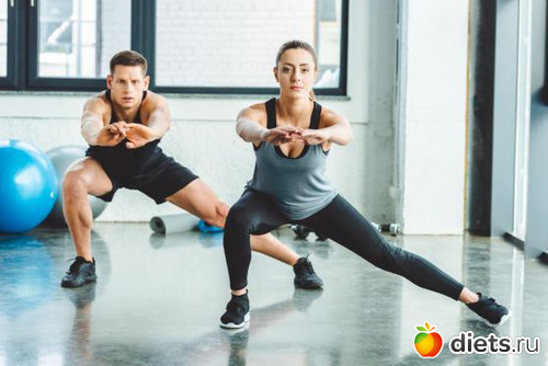 * Приседания.Начните с классических приседаний на двух ногах, а затем усложняйте, выполняя выпады.Делайте 2-3 подхода по 16-20 повторов в каждом