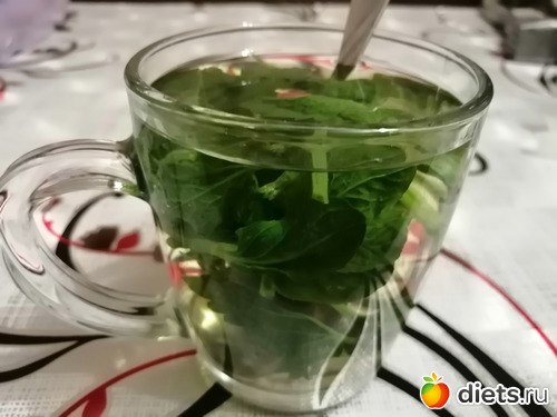 Ещё ж питание: что-то голубого у меня из посуды нет ничего, и кухня бежево-зеленая. А вот чай сейчас пью только с мятой и мелиссой