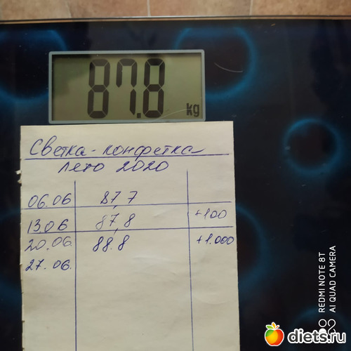 Вес прыгает в пределах 1 кг. Целей себе не ставлю, хочу отдохнуть. Всю неделю готовили площадку под фундамент, очень устала, ещё и КД, жара, просто ж....