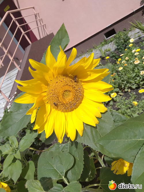 Возможности выехать в поля нет, но солнышки есть у подъезда.Даже с пчёлками.