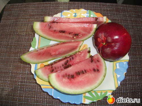 Съела арбуз и яблоко.