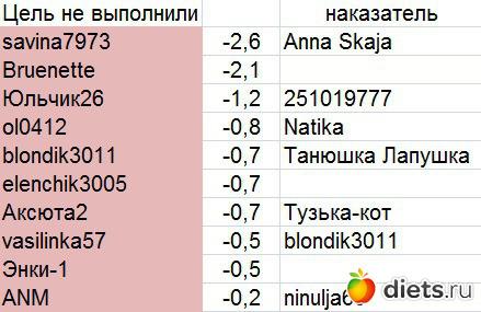 Попрошу в следующий отчет сразу писать: выполнили ли Вы цель или нет. Если нет - сразу ник наказателя. Кто не выбрал - выберите и напишите тут.