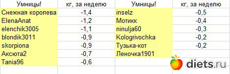 И вообще за эту неделю Мы плохо постарались: как команда (несчитая 4-х участников) скинули только -4,3 кг...