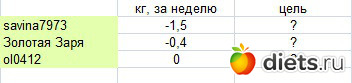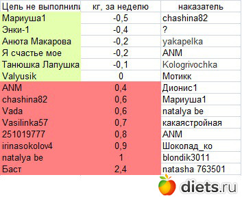 Участницы, которые цели не выполнили. Половина ещё и вес набрала