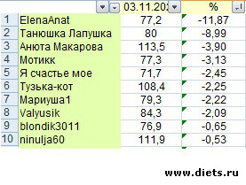 1-е место - ElenaAnat! Она скинула уже 10,84 % веса!
