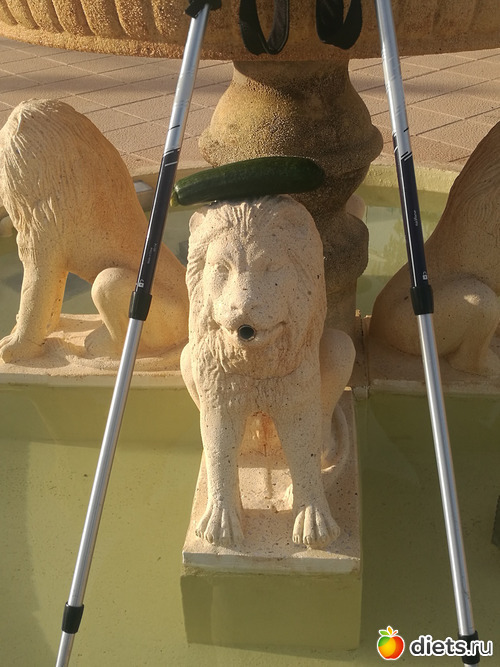 -фонтан"под львов Альгамбры"и мои палки для скандинавской ходьбы