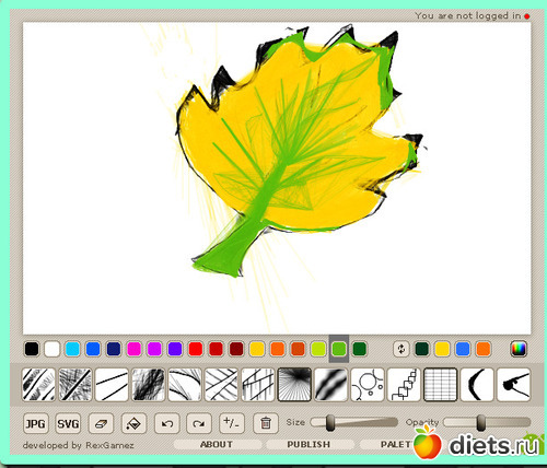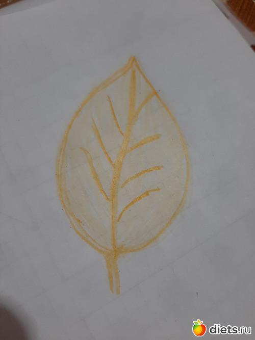 Листочков пока желтых не видела, попробовала нарисовать в онлайн программе листик осенний, не так-то просто, как карандашом
