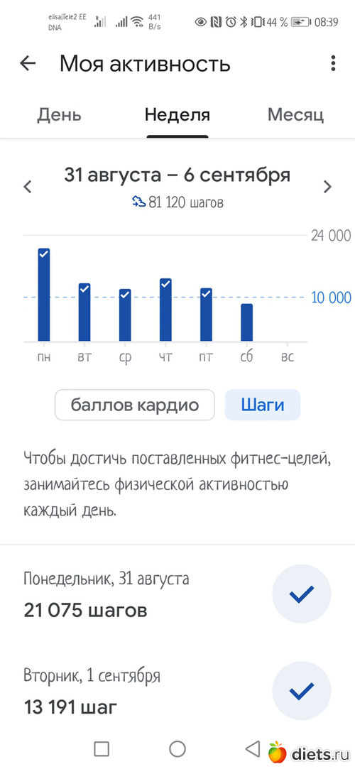 По желанию можно выкладывать скриншот или фото с количеством шагов за неделю.