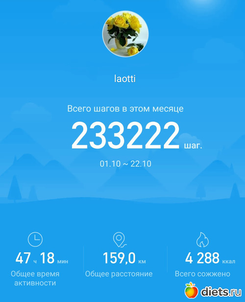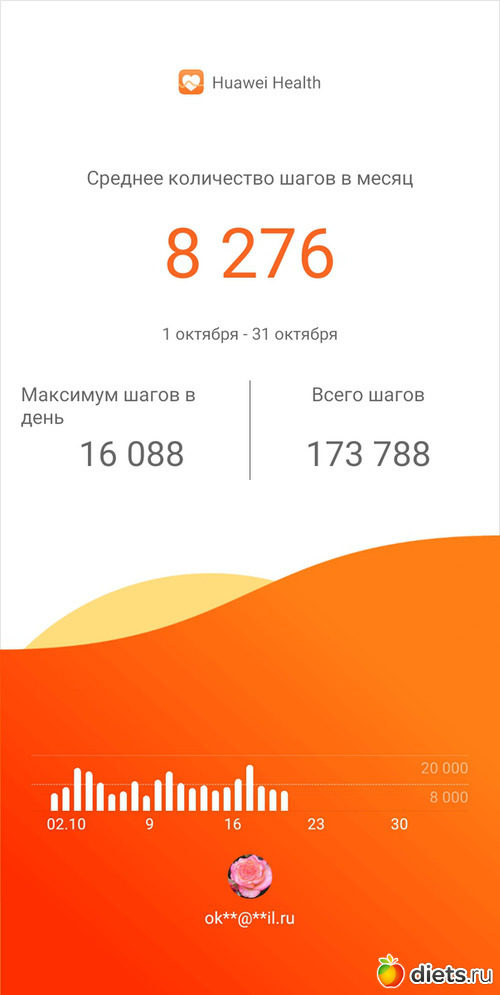 Добрый вечер. Последний отчёт был по 28 сентября. С 29 по 20 октября получилось 173816 шагов.