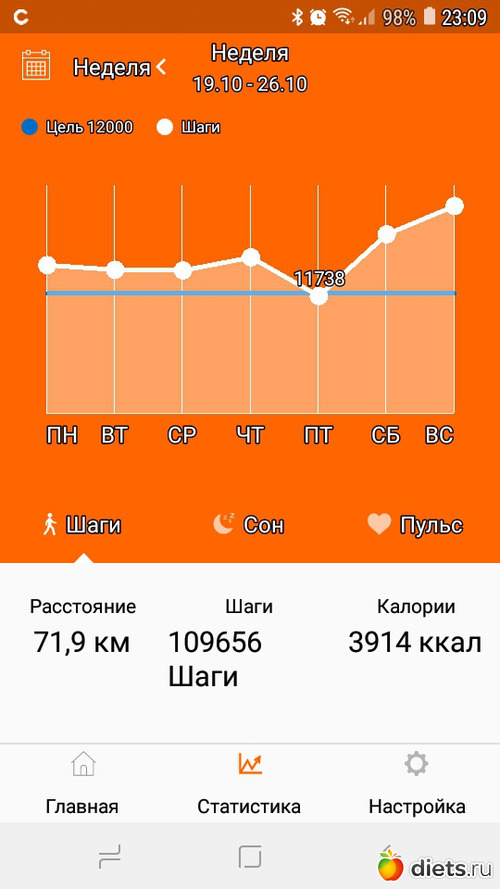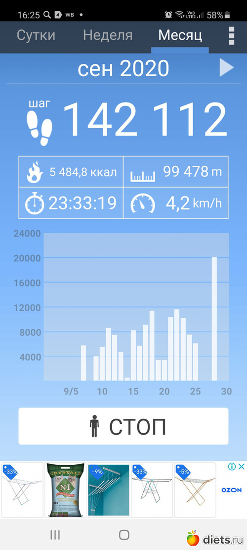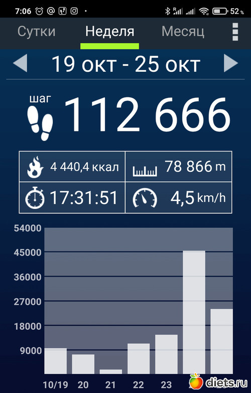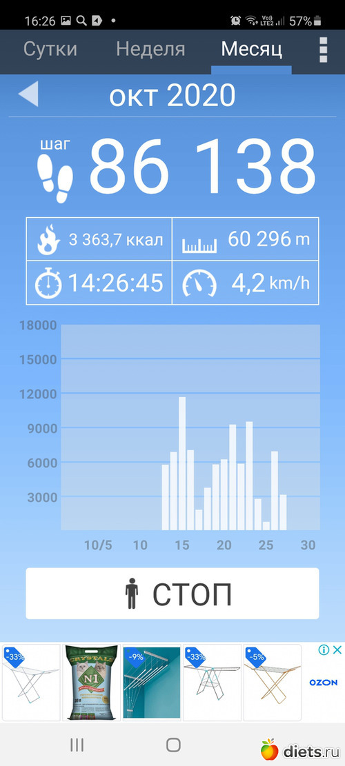 На всякий случай сбросила и октябрь пусть еще и не полный, потому чт за сентябрь дней десять вообще нулевыми оказались, то ли шагомер в спящем режиме был, то ли я марфа что то нажала