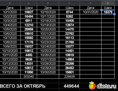 За октябрь -(пока в экселе из за смены браслета в сентябре и октябре)