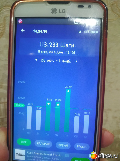 По желанию можно выкладывать скриншот или фото с количеством шагов за неделю.