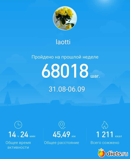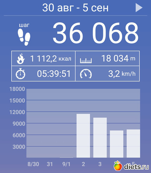 За период с 1 сентября по 7 сентября включительно пройдено 95718 шагов.