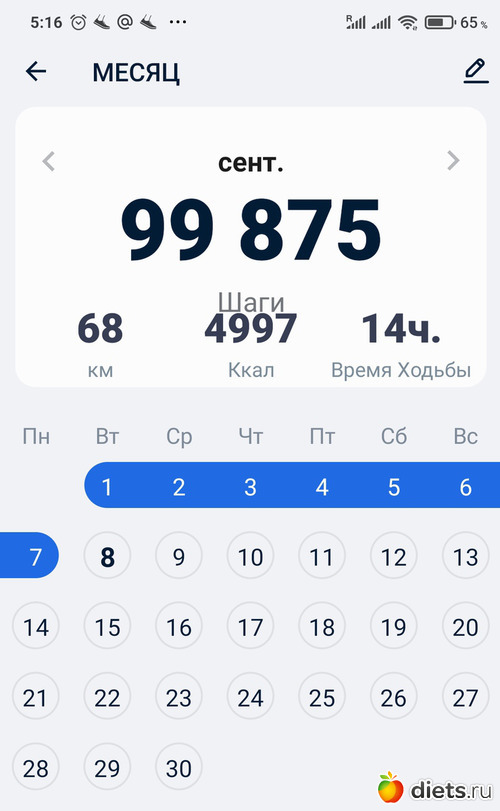 С 1.09 по 7.09 - 58773 шагов