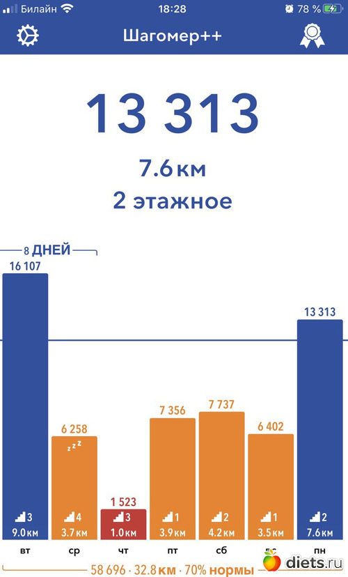 Мои шаги с начала месяца. За прошедшую неделю зафиксировано - 38913. Так что я замыкаю ряды