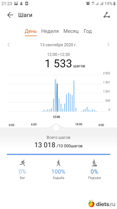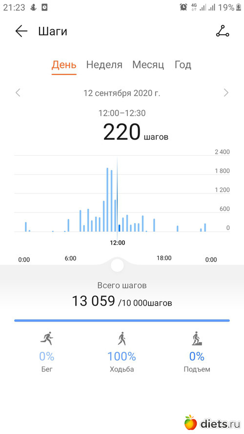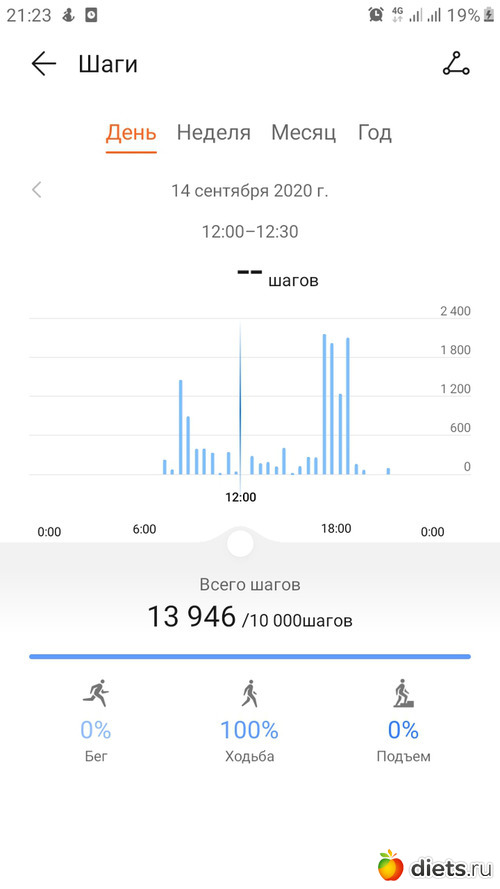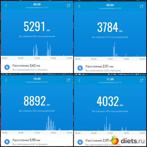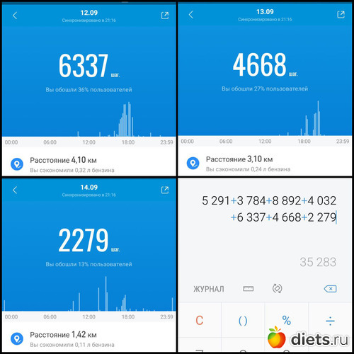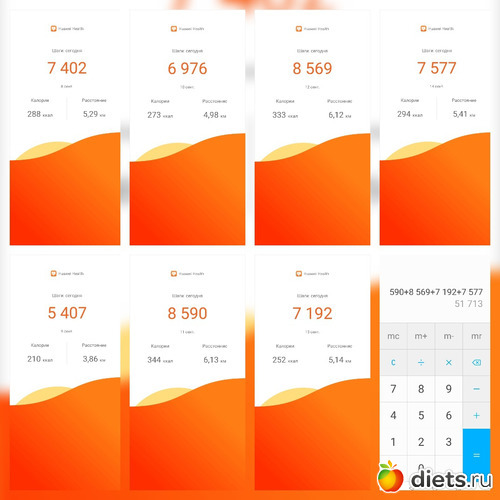 Но мой телефон считает шагов больше. А её считает больше этажей подъемов... (А она вообще только лифтом пользуется