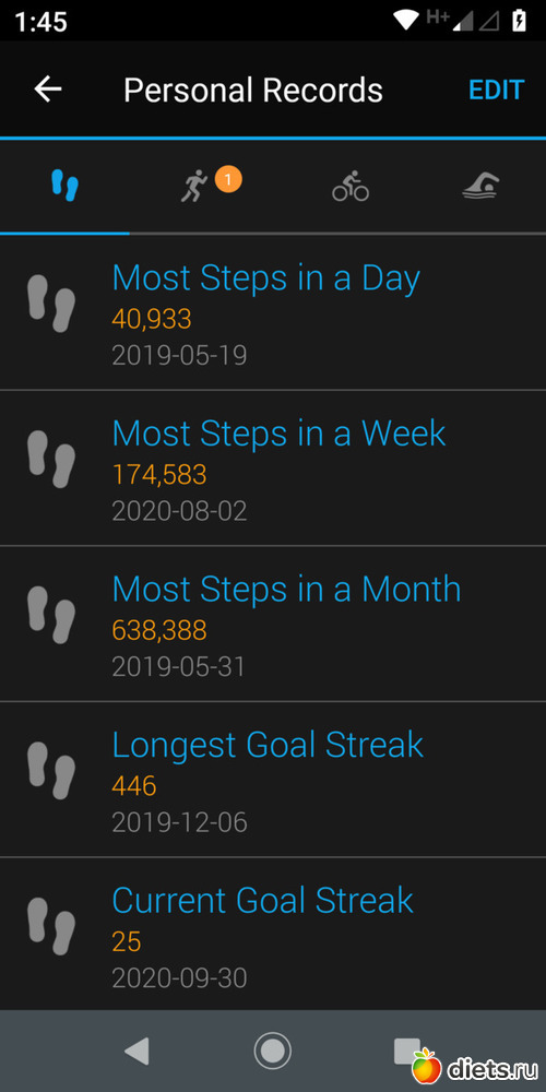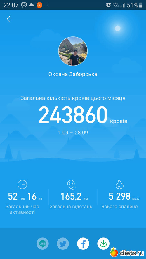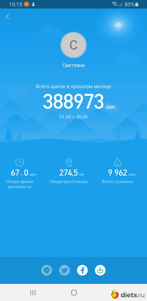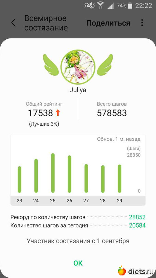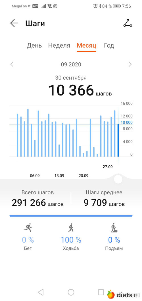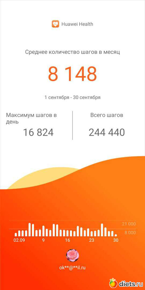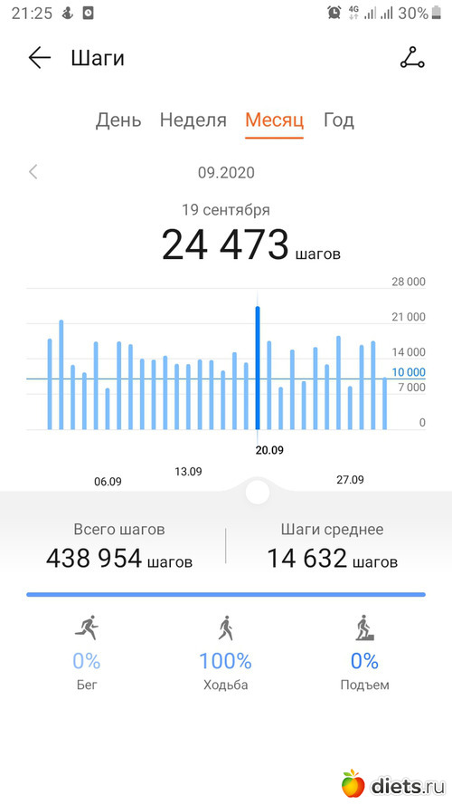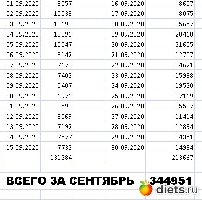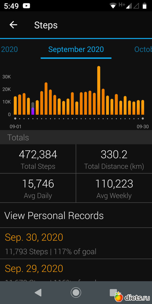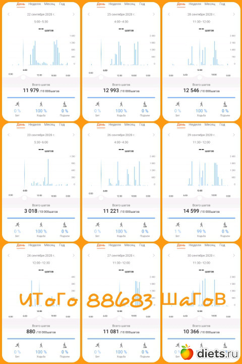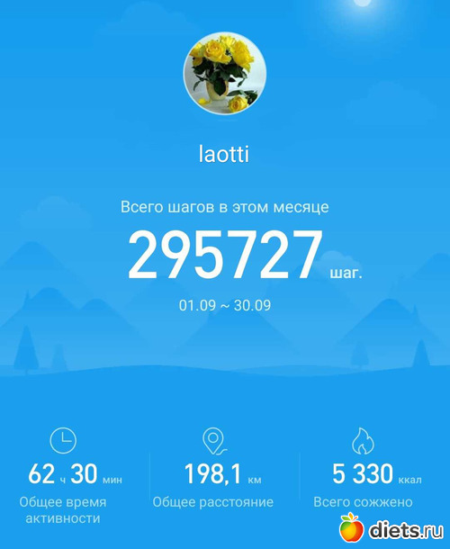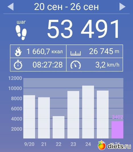 Добрый день всем. С 22 по 28 сентября =244440-183798-5100-1847 (29,30 сентября)=53694 шага.