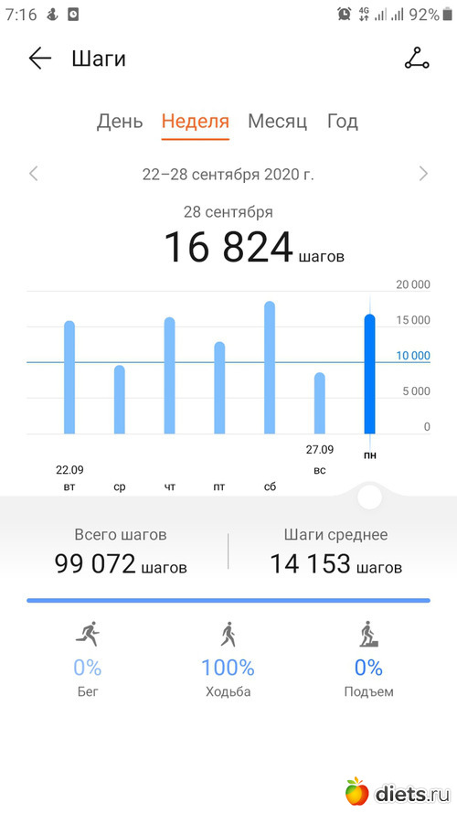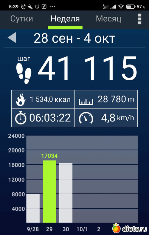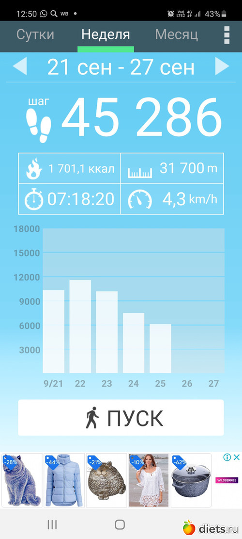 За неделю 56211 шагов ,вечером добавлю за 2 дня