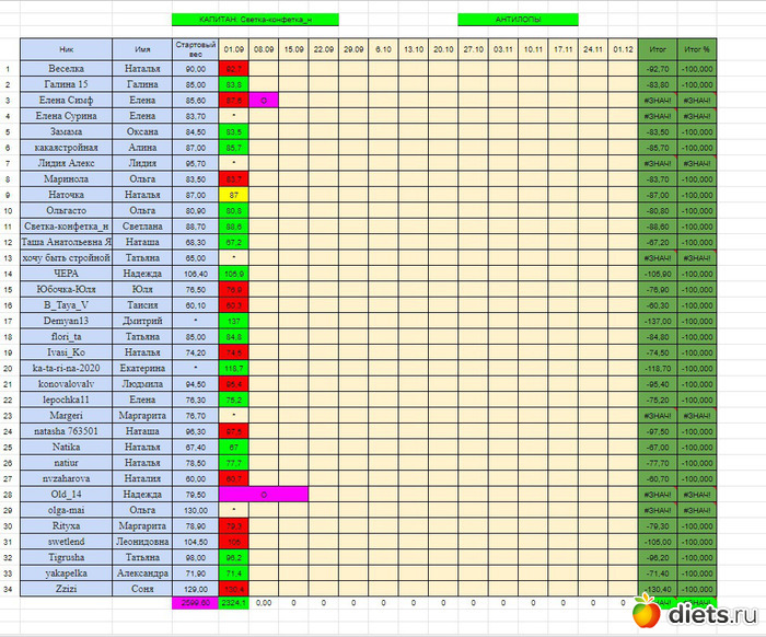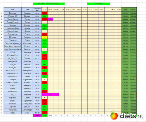 Выставленное в начале марафона 1 сентября. мой вес 132 и если мне не удастся похудеть до 130 которые указаны в таблице, мне будет большой и жирный минус Вот я и переживаю.