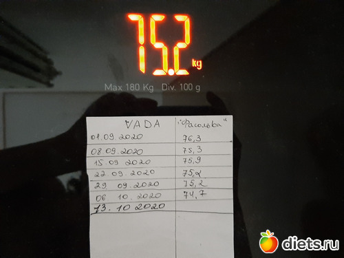 Вес на утро 14.10. 77.4кг...привесило +400гр...