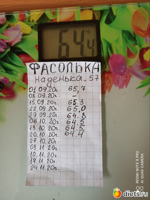 Минус 300 грамм, вес 63.6. Задачи выполнила.