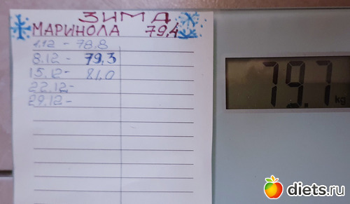 Но до цели к Новому году вряд ли доберусь. Поэтому поставлю целью - 800 грамм. Хотя бы цифру 78 увидеть на весах.