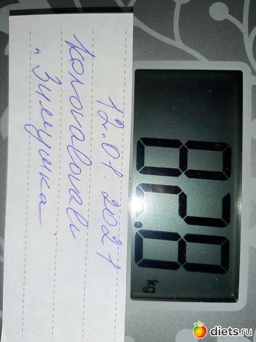 Итак. Здесь . Фото весов с запиской, бумажной или электронной, где указаны: