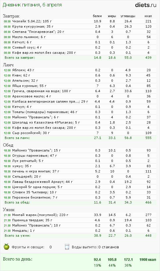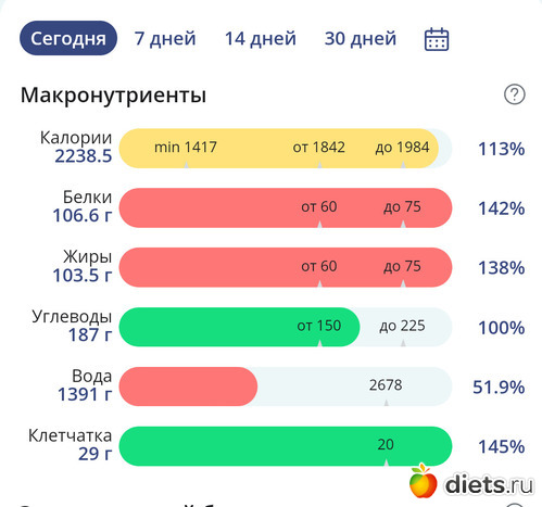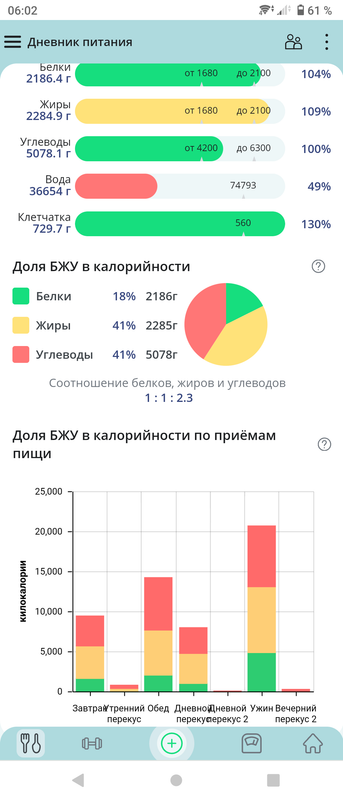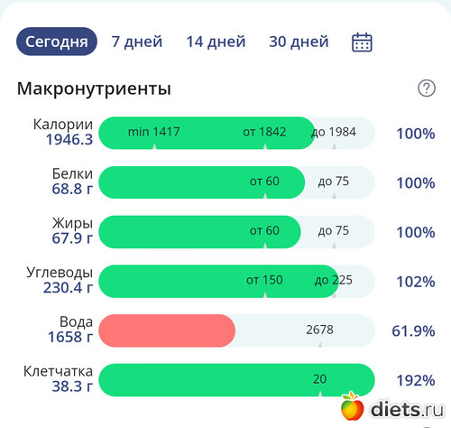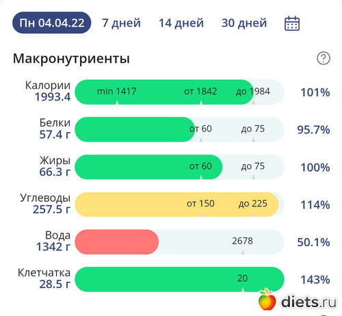 Мне нужны только КБЖУ, а специально клетчатку не наедаю, и воду пью по чувству жажды, не слежу сколько и не записываю.