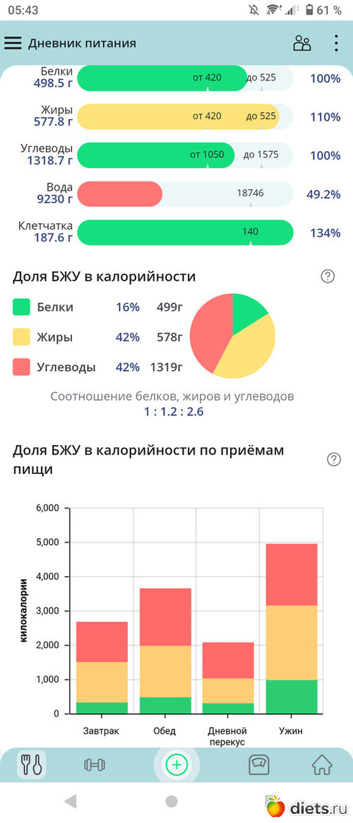 Воду и клетчатку программа автоматически учитывает из моего рациона, я в это не вникаю.
