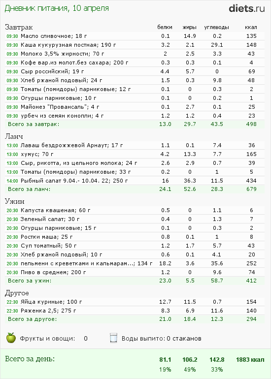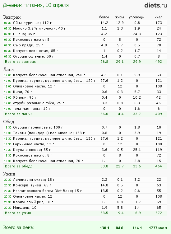 Только вот заметила ошибку: в предыдущих отчётах писала, что худею с 27 февраля. Нет, это я на подсчёты села 27-го, а худеть начала с начала февраля на глаз, и немного похудела, но с подсчетами удобнее.