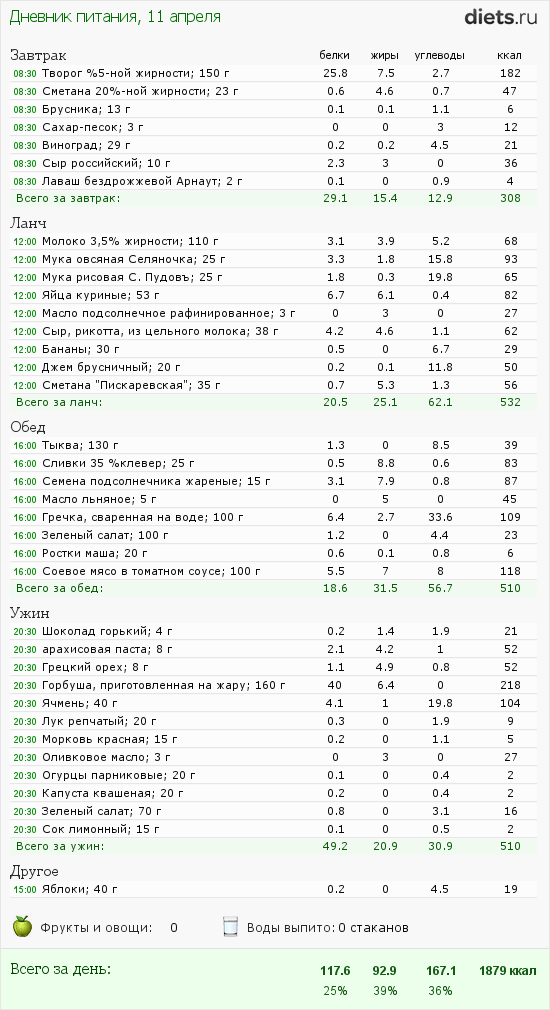 Вышел серьёзный перебор по белкам. Но и тренировка в этот день была адищенская