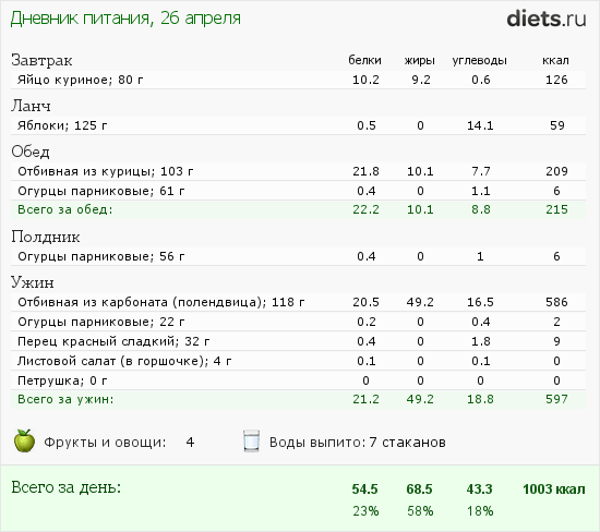 По калорийности сегодня нормально.