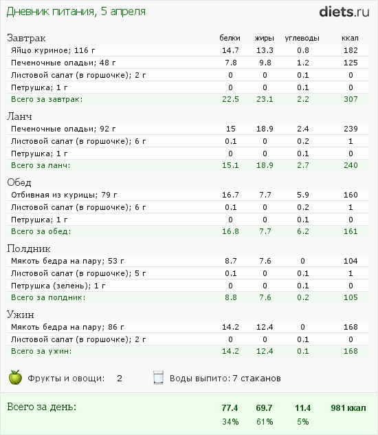 По калорийности сегодня чуть ниже нормы
