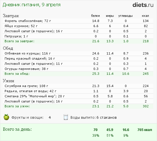 По калорийности немного маловато, но не было перекусов. Было три приёма пищи по 200 гр., но зато очень сытные!