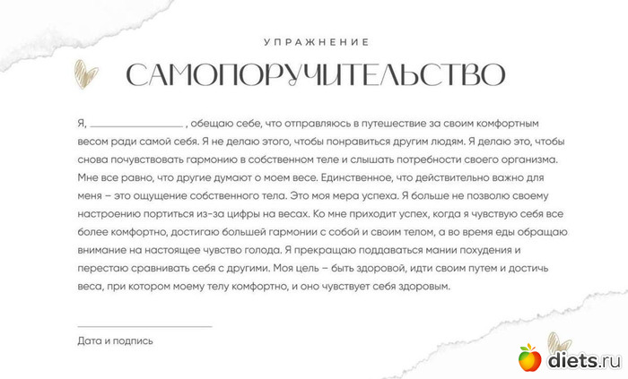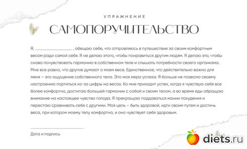 Мое письмо лежит под стеклом рабочего стола - то место, где я провожу больше всего времени. Написано оно 28.12.2022года, с того времени я убрала лишние 5,2 кг веса, а сейчас, за неделю диеты еще 3,3кг, но понимаю, что этим могу себе навредить. Поэтому я снова перечитываю свое Самопоручительство и беру себя в руки и ответственность за свое здоровье и свою жизнь!