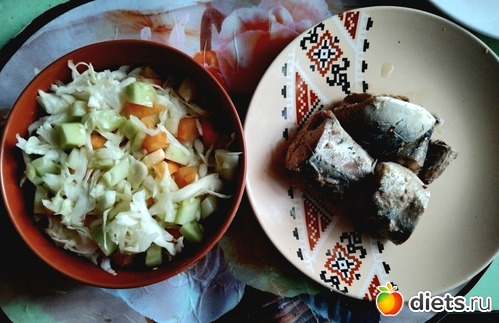 250 гр салата из овощей ( свежие огурцы, капуста, сладкий перец)+ 5 гр масло авокадо хотя надо 400 гр