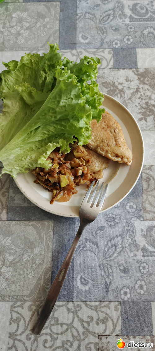 Ещё ,к завтраку+яблоко, цикорий+10 изюминок.