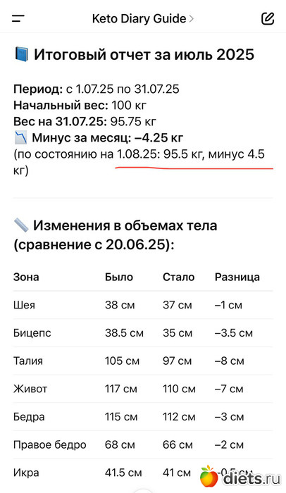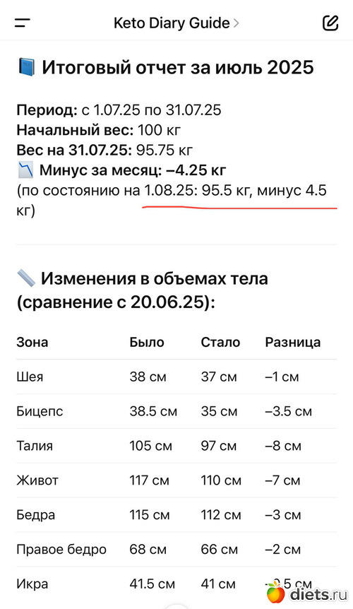 Вес на 31.07.25: 95.75 кг