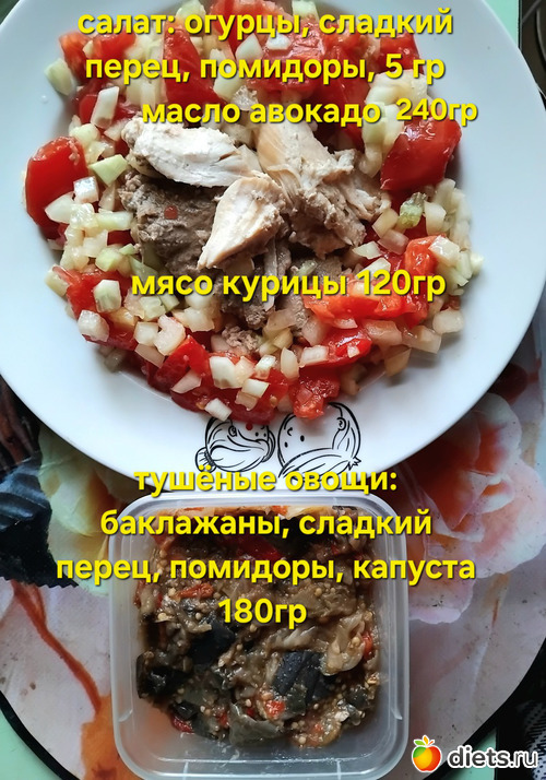 К нашему белку добавляем энергию овощей 180 гр свежих и 240 гр тушёных.