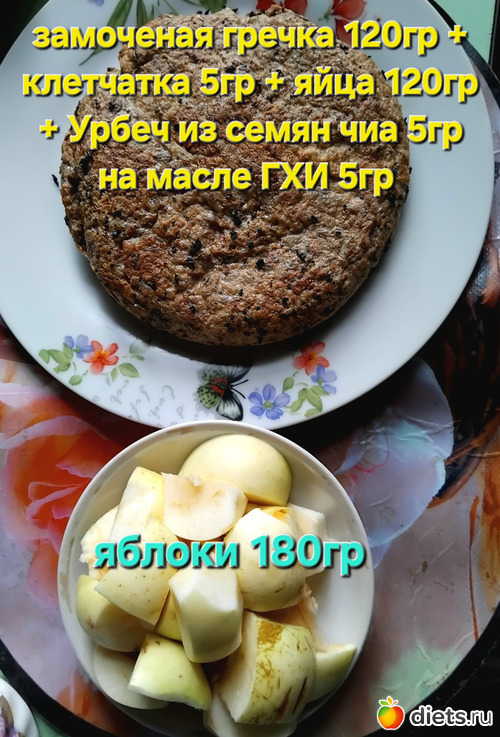 кашу берём только на завтрак в готовом виде 120 гр, сливочное масло 5 гр, ( жиры на день берём 30 гр и распределяем на 3 приёма, но за один раз не более 15 гр жиров), берём 2 варенных яйца 120 гр и фрукт 180 гр