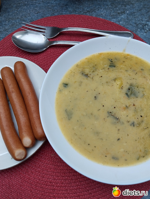 Борщ с курицей без картофеля (300г), фрукт пока не знаю, что куплю.