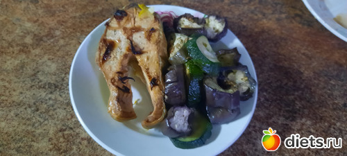 Ужин - 150 г горбуши, с запеченными баклажанами и кабачками на гриле 20 г